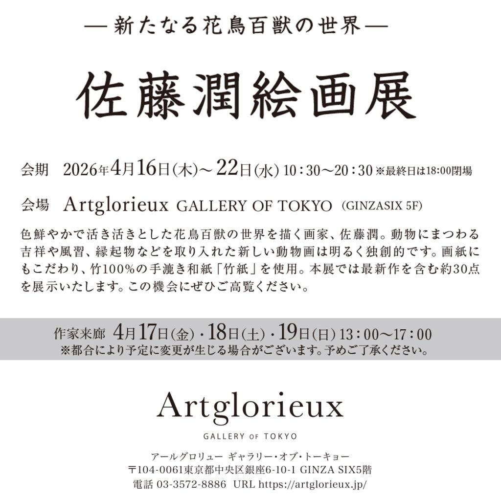 佐藤潤絵画展~新たなる花鳥百獣の世界~ 4/16(木)~4/22(水)